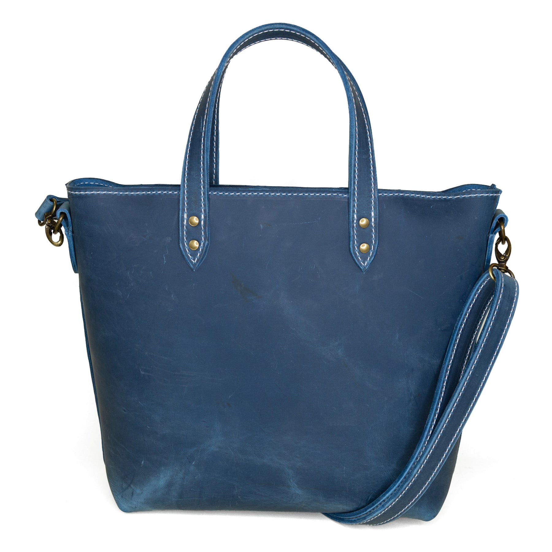 • Over-the-shoulder tote in unlined, full-grain leather