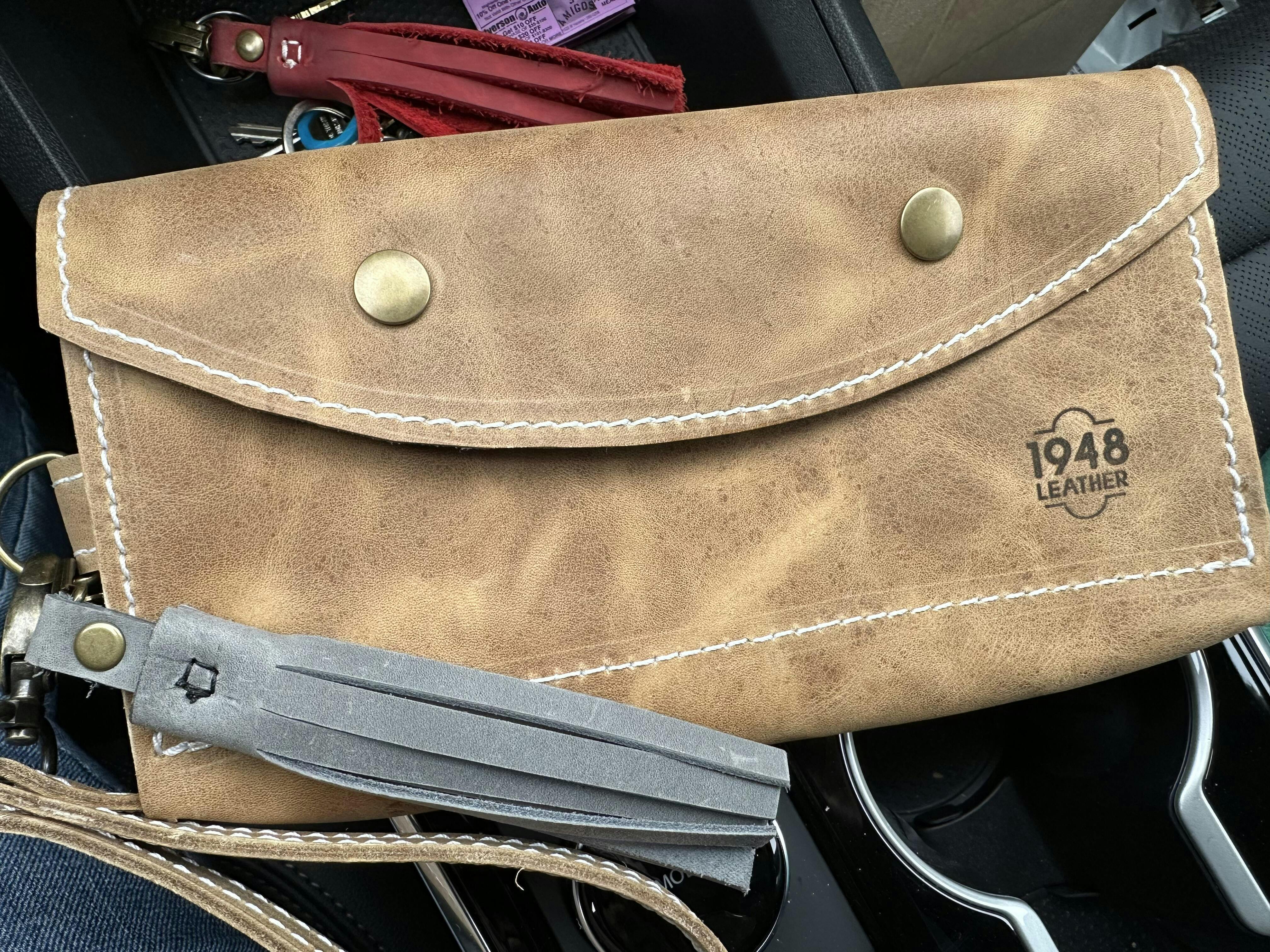 • d-ring feature to attach a Key Fob for a wristlet style
